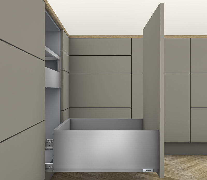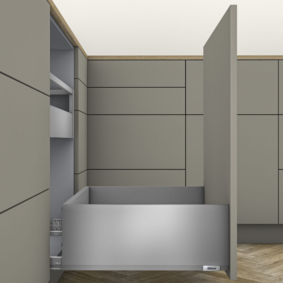 Ο καινοτόμος οδηγός σχήματος L χαρίζει στο MERIVOBOX την εκπληκτική του σταθερότητα – το MERIVOBOX εντυπωσιάζει ακόμη κι όταν είναι γεμάτο. Το νέο σύστημα box δεν χαρακτηρίζεται απλώς από εξαιρετικά ελαφριά συγχρονισμένη κίνηση, αλλά και μεγάλη σταθερότητα της μετώπης, προσφέροντας νέες δυνατότητες σχεδιασμού στις κουζίνες (οι ψηλές μετώπες μπορούν να συνδυαστούν εύκολα με χαμηλά πλαϊνά συρταριού).