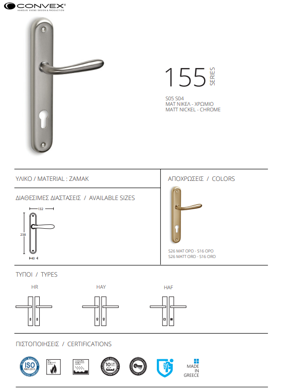 Convex – Χειρολαβή πόρτας πλάκα ΣΕΙΡΑ 155