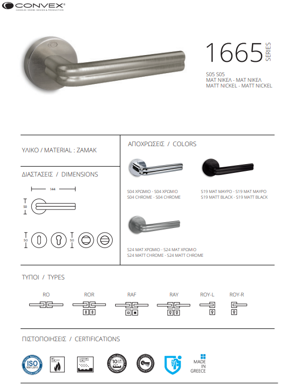 Convex – Χειρολαβή πόρτας σε ροζέτα ΣΕΙΡΑ 1665