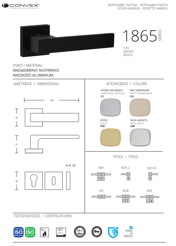 Convex – Χειρολαβή πόρτας σε ροζέτα ΣΕΙΡΑ 1865
