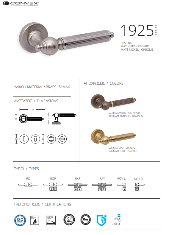 Convex – Χειρολαβή πόρτας σε ροζέτα ΣΕΙΡΑ 1925
