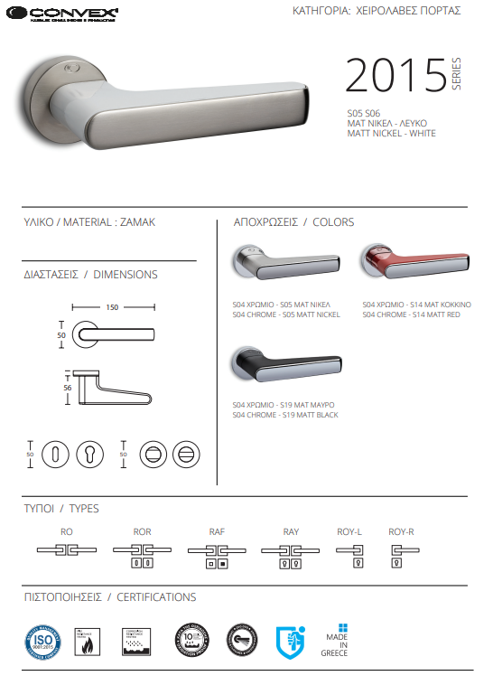 Χειρολαβή πόρτας σε ροζέτα με την υπογραφή των σχεδιαστών της Convex. Μοναδικός μοντέρνος σχεδιασμός.