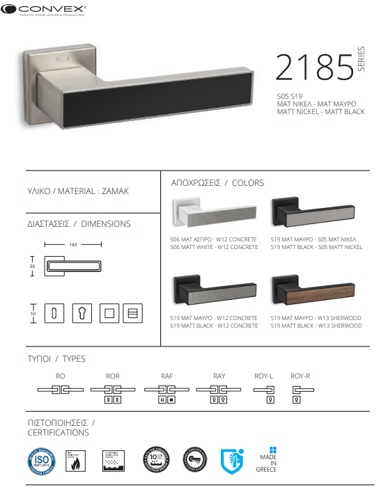 Χειρολαβή πόρτας σε ροζέτα με την υπογραφή των σχεδιαστών της Convex. Μοναδικός μοντέρνος σχεδιασμός.