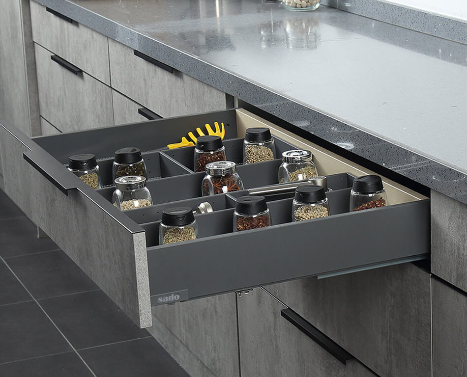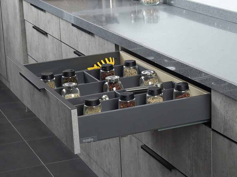 Συνδυάστε συρτάρια SADO INBOX οποιουδήποτε βάθους με ειδικά αξεσουάρ και κατασκευάστε εσωτερικά συρτάρια ιδιαίτερης αισθητικής.