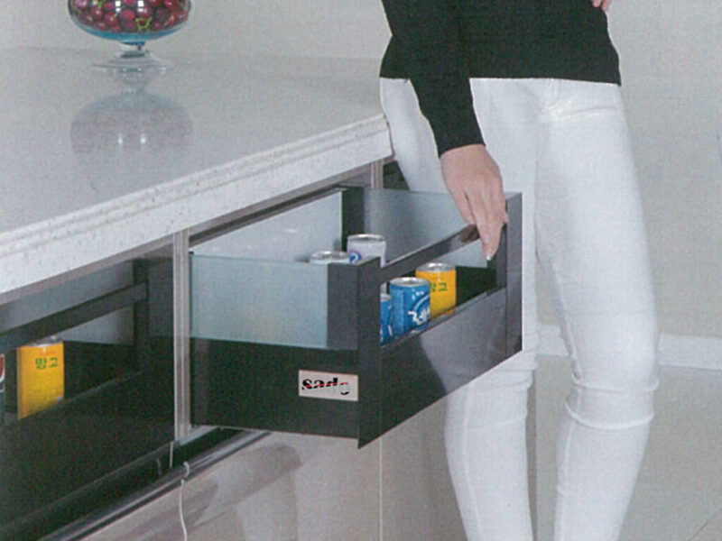 Διαθέτει σταθερό πλαϊνό σε μοντέρνα γκρι απόχρωση και αύξηση του ύψους συρταριού με βέργες ή γυάλινες περσίδες. Υποστηρίζεται από άριστης ποιότητας οδηγούς 40kg για ομαλή κίνηση και σύστημα soft closing.