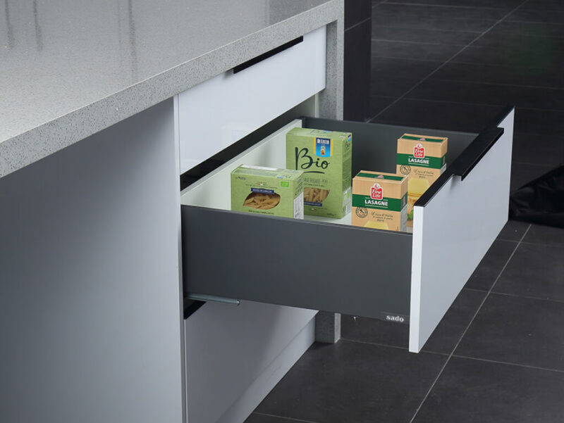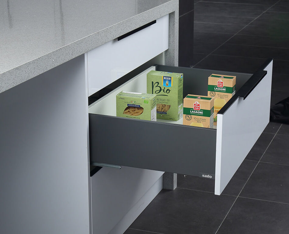 Διαθέτει μοντέρνο design με λεπτό μεταλλικό πλαϊνό, άριστης ποιότητας οδηγούς 40kg για ομαλή κίνηση και σύστημα soft close. Προσφέρει μεγάλη σχεδιαστική ευελιξία και είναι κατάλληλο για κουζίνες, ντουλάπες και κάθε τύπο επίπλου.
