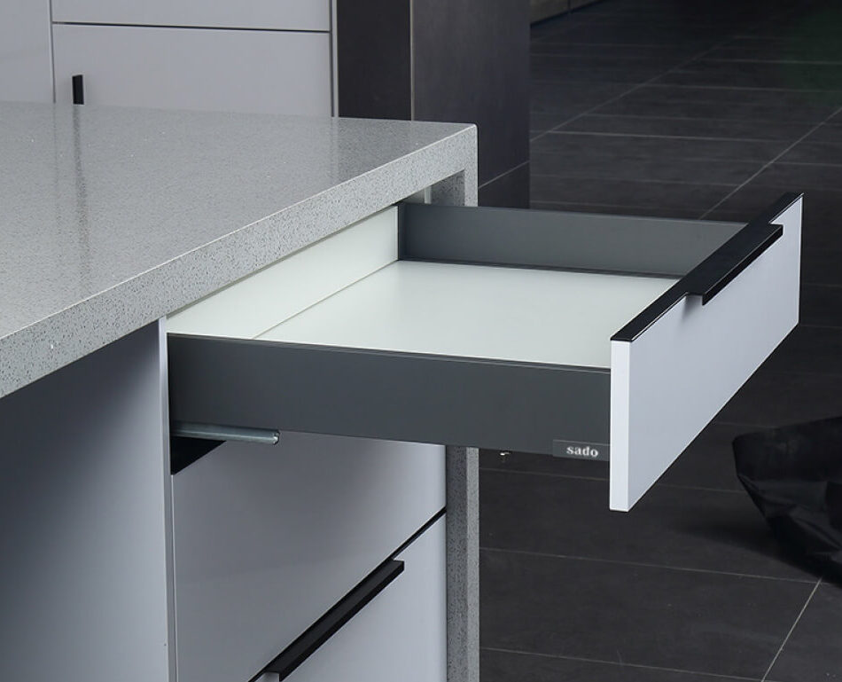 Διαθέτει μοντέρνο design με λεπτό μεταλλικό πλαϊνό, άριστης ποιότητας οδηγούς 40kg για ομαλή κίνηση και σύστημα soft close. Προσφέρει μεγάλη σχεδιαστική ευελιξία και είναι κατάλληλο για κουζίνες, ντουλάπες και κάθε τύπο επίπλου.